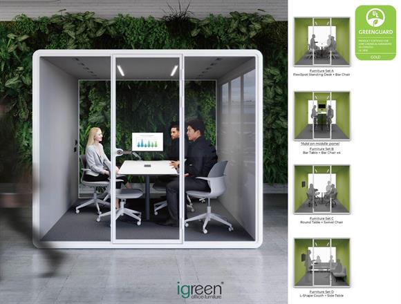 Igreen GreenPod™ – GreenGuard Edition is an eco-friendly acoustic office pod series thoughtfully designed for modern workplaces that value privacy, flexibility, and sustainability. Built with GreenGuard-certified materials, it ensures excellent sound insulation, efficient air ventilation, and a comfortable working environment.
