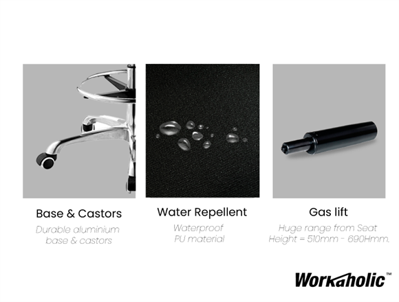 Kerusi tahan lama ini bagus untuk tetapan industri dan makmal yang keras, ia disertakan bersama Tempat duduk dan sandaran acuan uretana berkulit sendiri dan mesra ke mana-mana tempat yang memerlukan pembersihan yang kerap. Tempat duduk dan sandaran belakang mudah diselenggara dengan hanya mengelap mudah dan menahan kerosakan daripada pelincir air, bahan kimia, dakwat, cat, salutan dan resin. ciri kerusi adalah sokongan ergonomik dan keselesaan untuk pengguna.