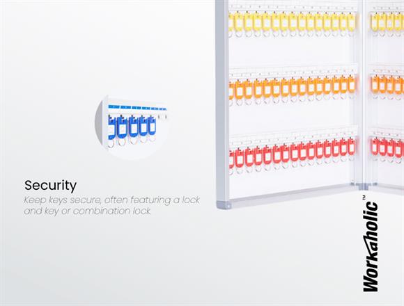 Our Key Cabinet body construction is built with anodised aluminium for extra durability. It comes with colour coded key tags for easy organisation and wall fixings for wall mounted purposes. Suitable for warehouses, hotels, hospitals, schools, shops, and personal residences.
